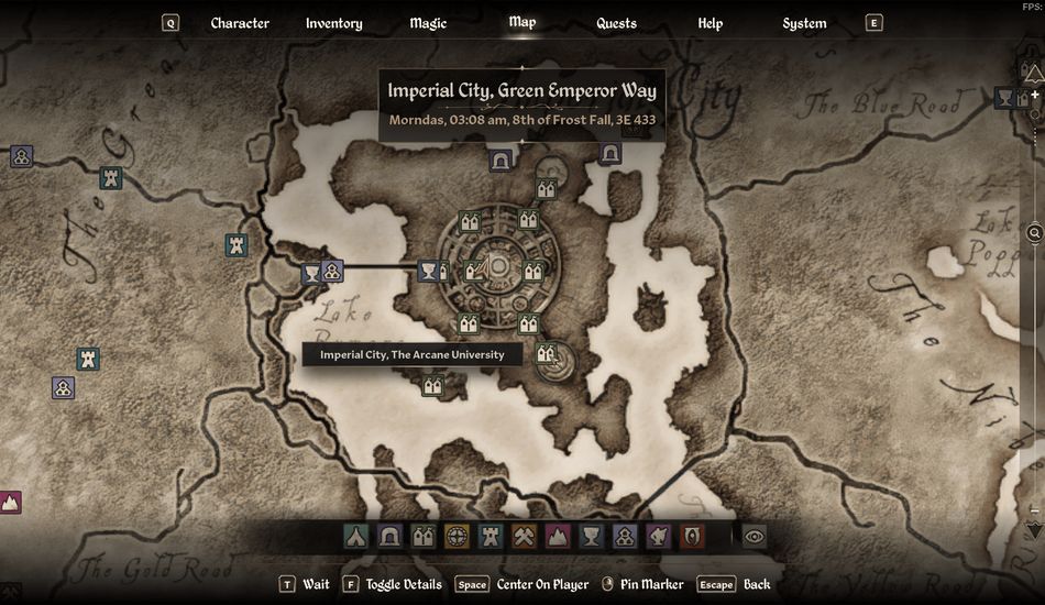 Depois de ter suas recomendações, vá para a Cidade Imperial e a Universidade Arcana, localizada a sudeste do centro da cidade. Entre nos aposentos do Arquimago e fale com Raminus Polus. Mostre a ele suas recomendações e ele lhe concederá o posto de Aprendiz.